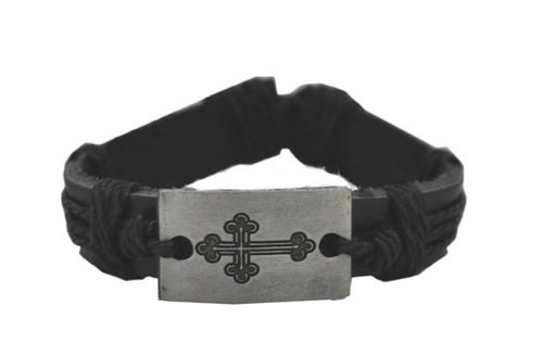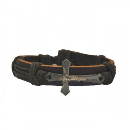 Браслет кожанный с крестом 001