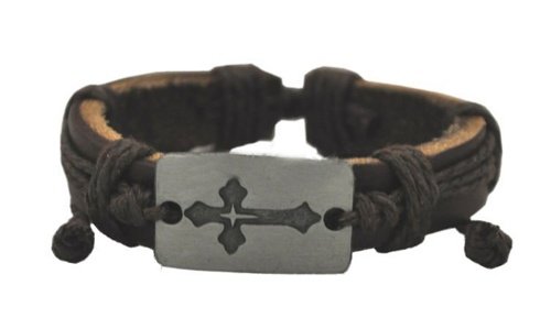 Браслет кожанный с крестом 003