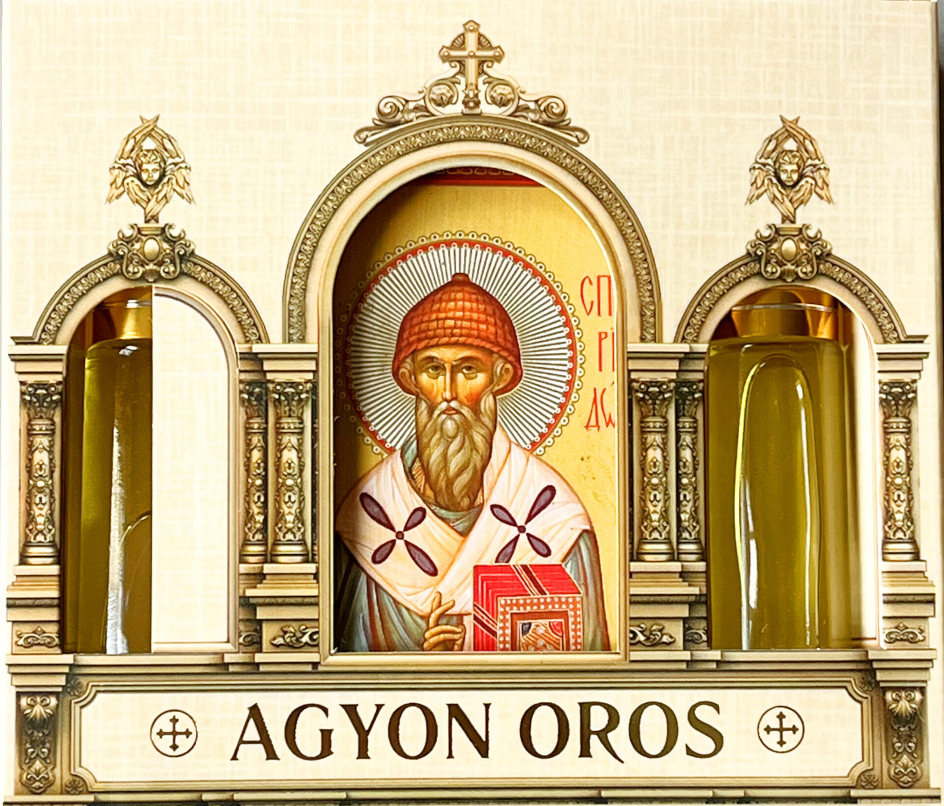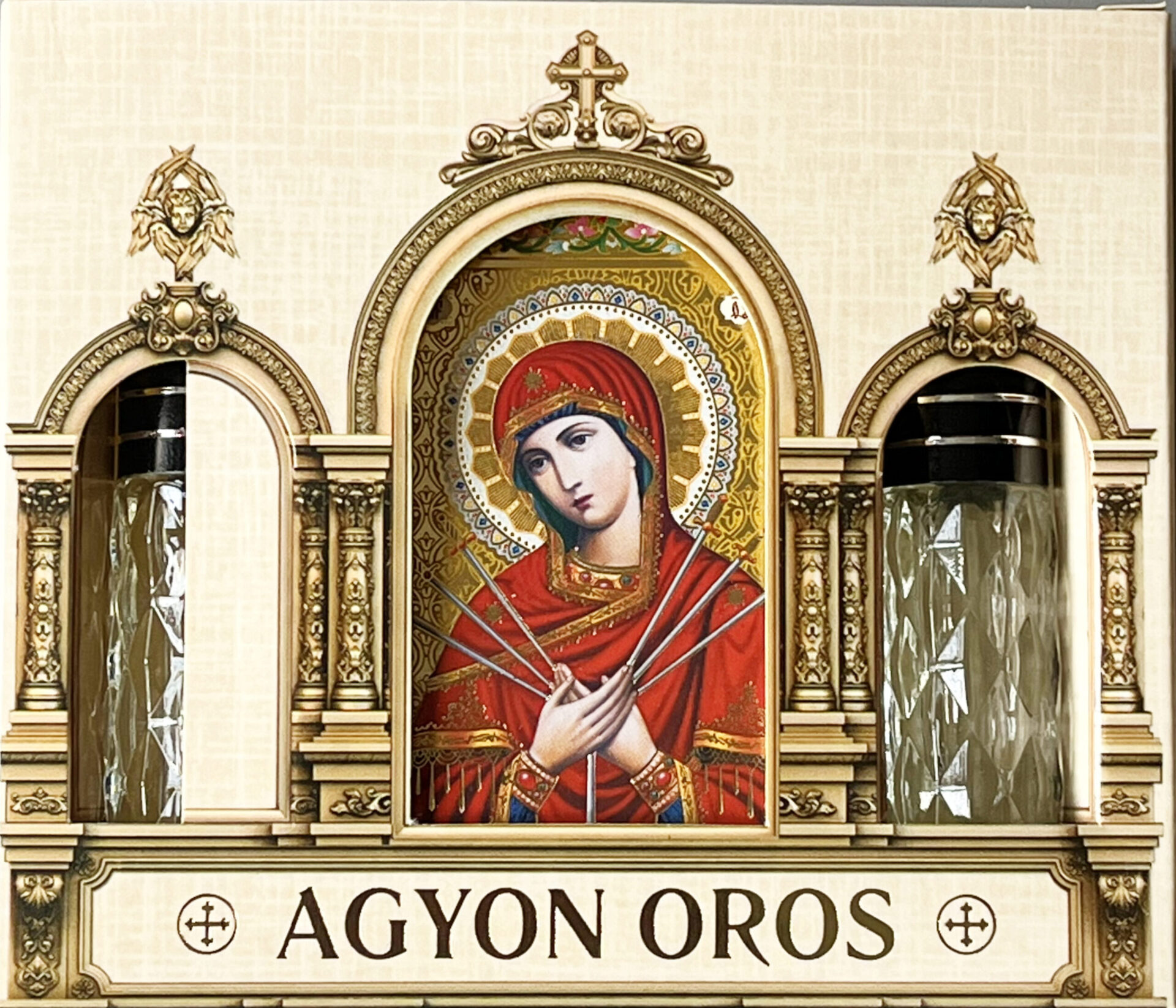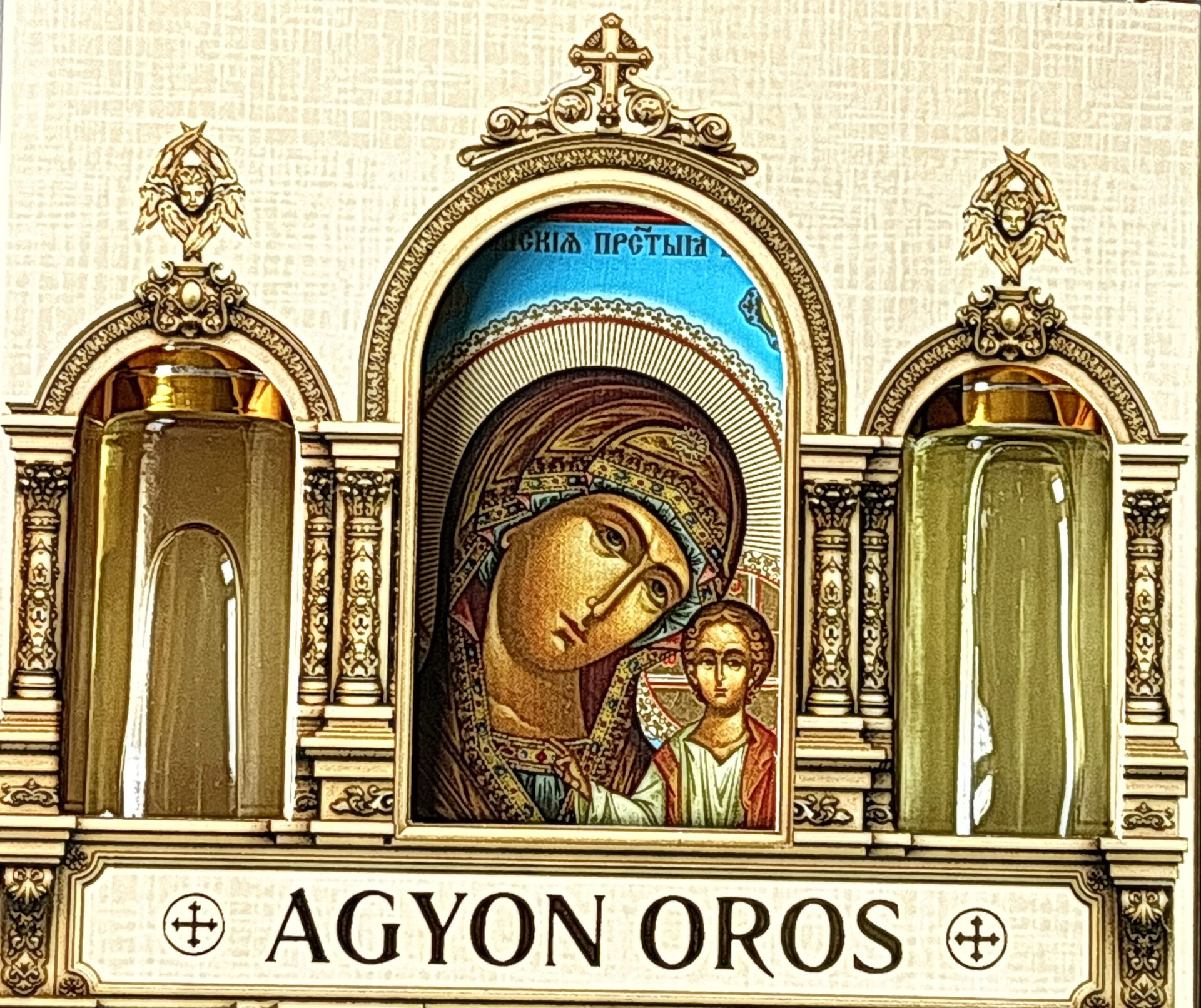 Икона на дереве 6х8 см, 2 греческих церковных благовония 10 мл