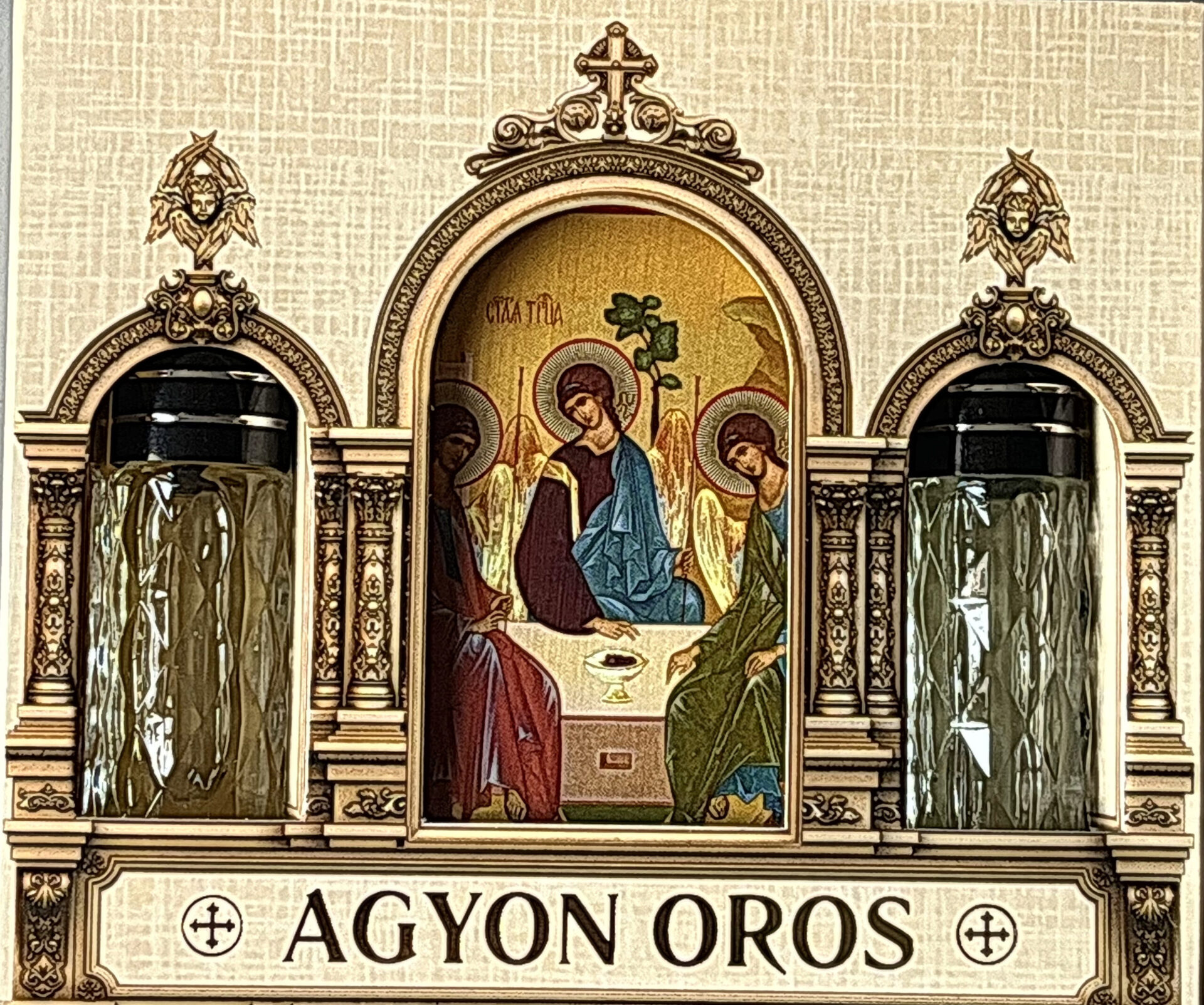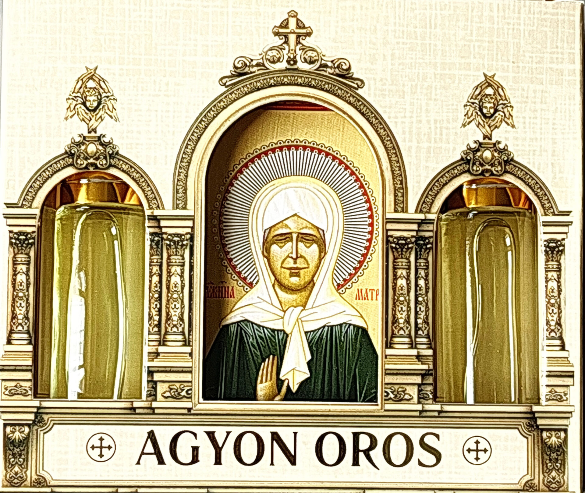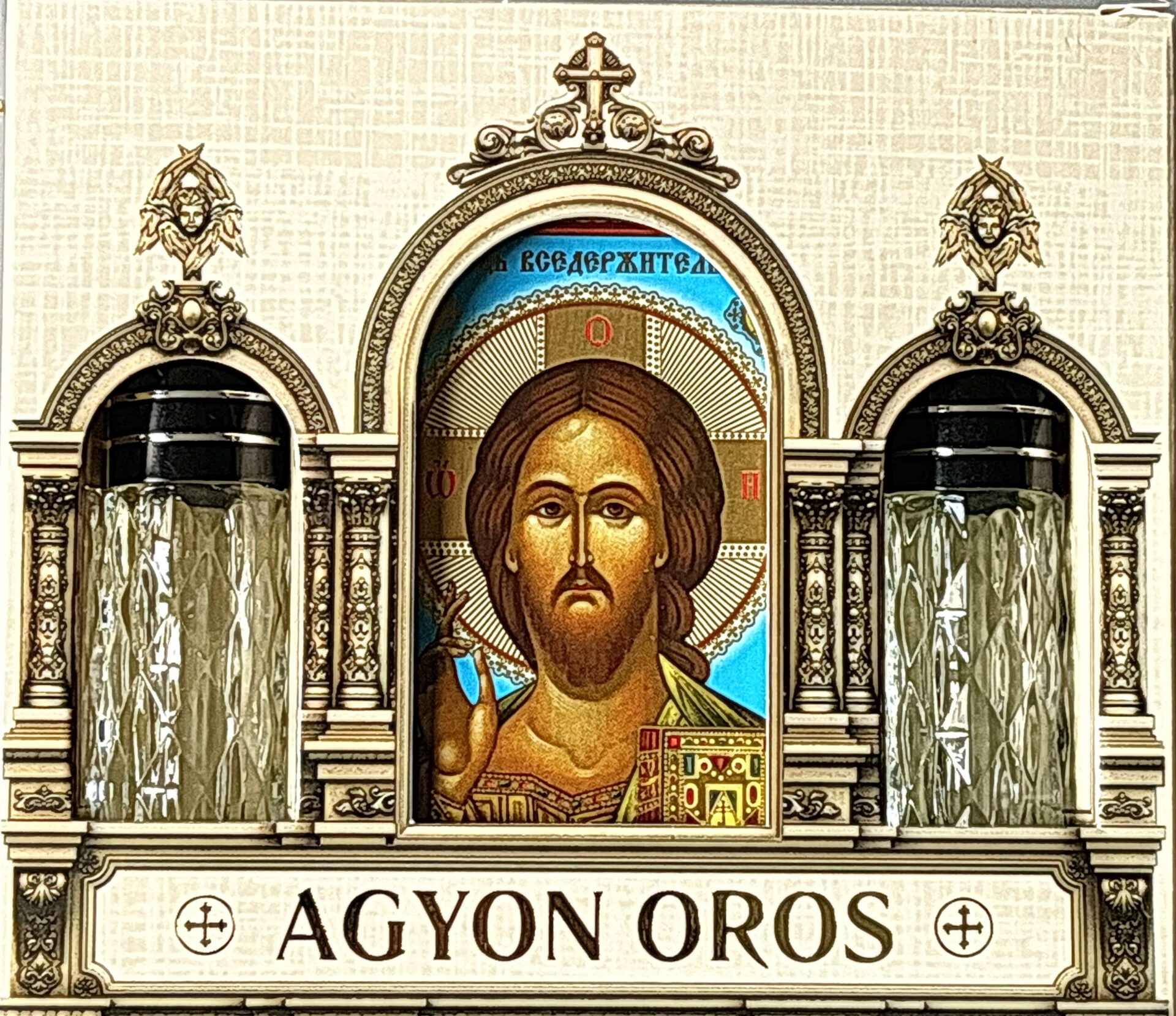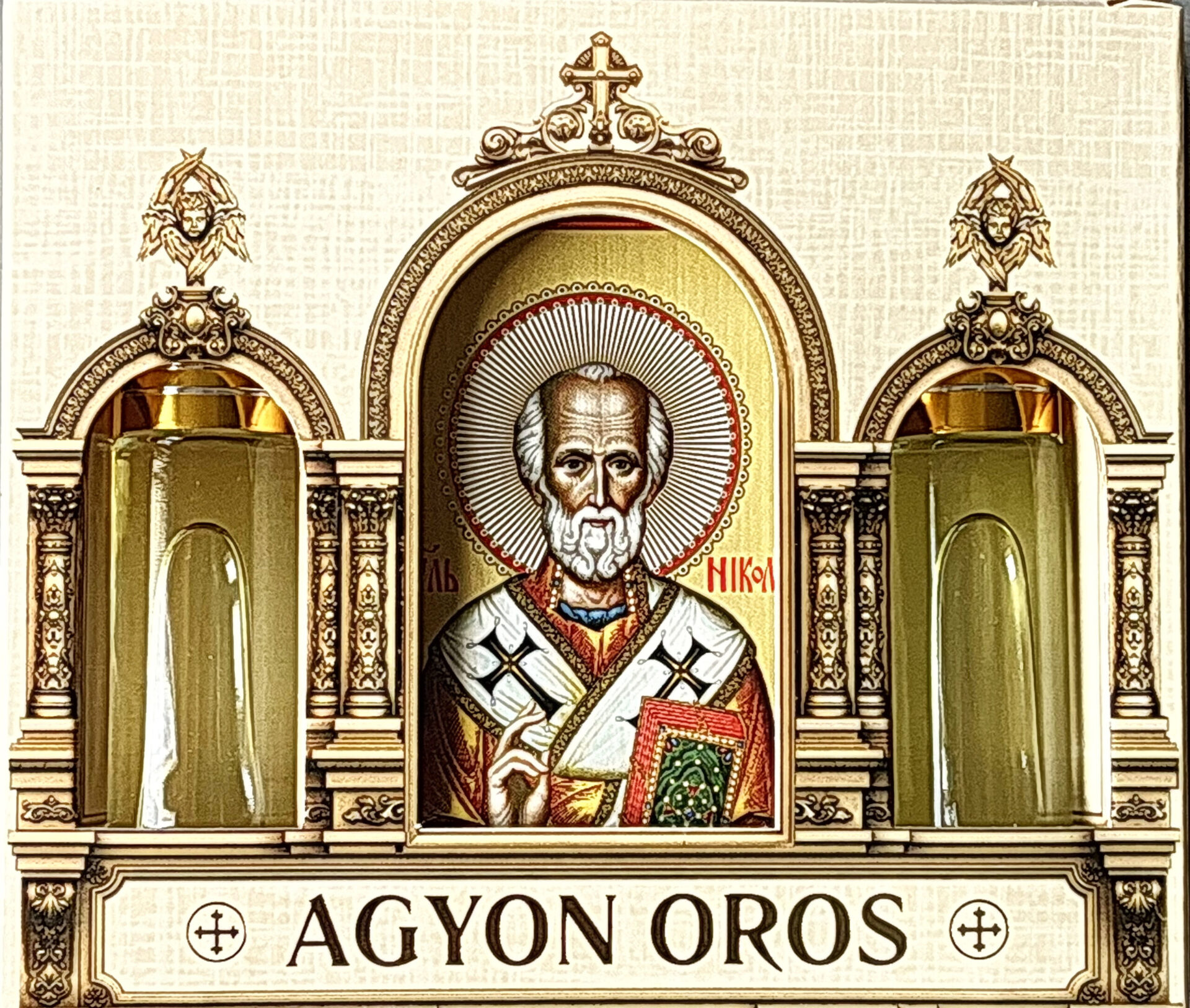 Икона на дереве 6х8 см, 2 греческих церковных благовония 10 мл