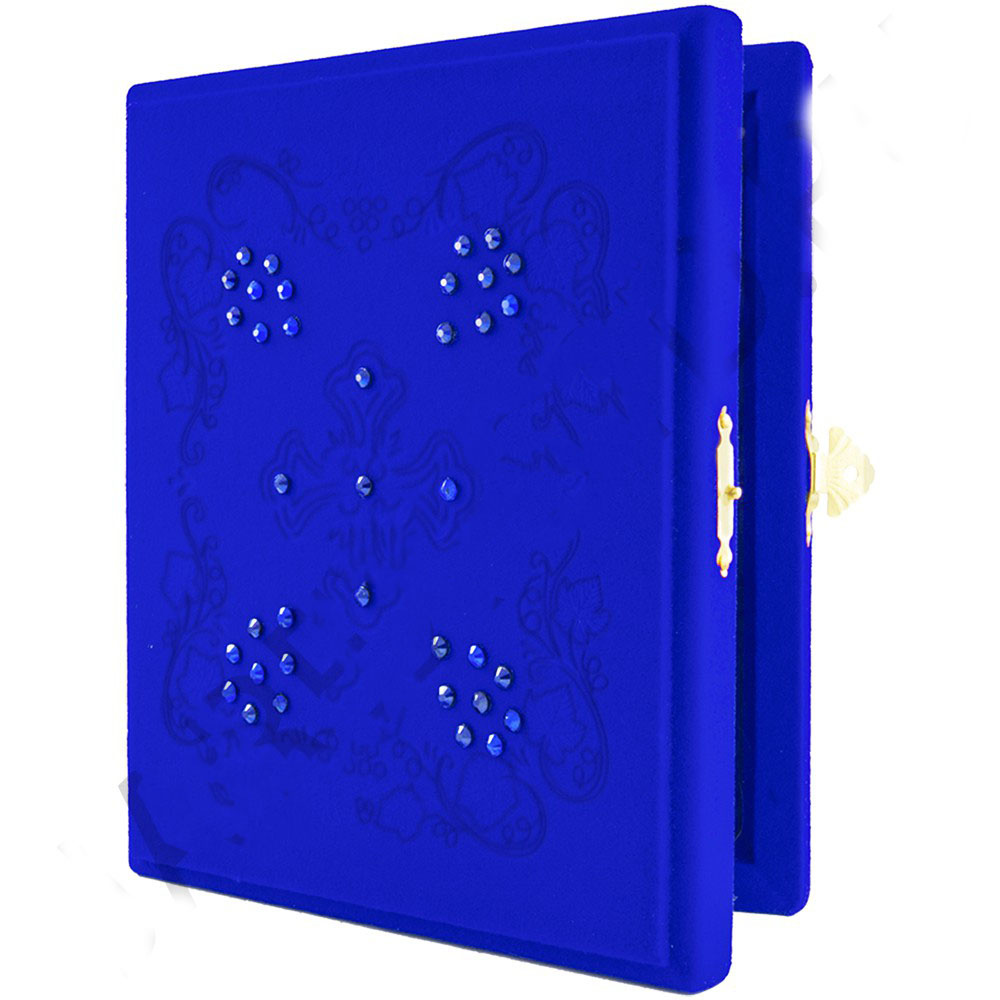 / Складень “Спаситель – Казанская”, флокир. синий, полиграфия со стразами; 18,5*21,5 СК-Ф/1518с